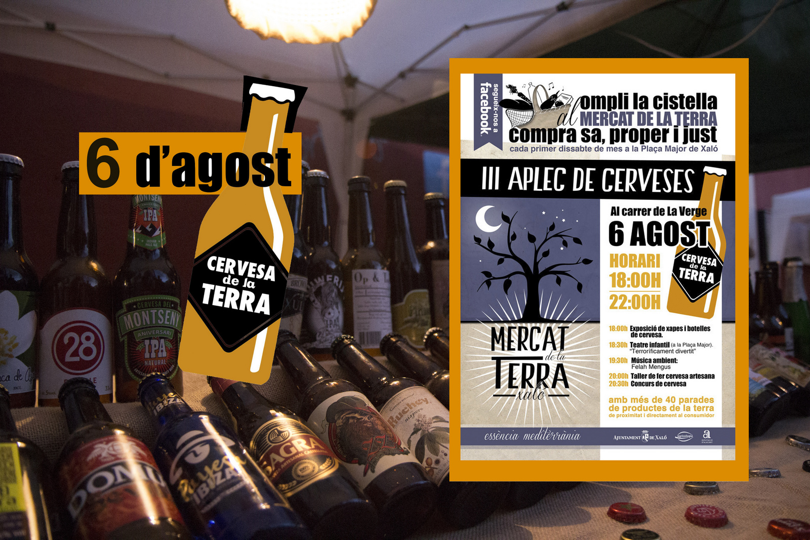 This “Aplec de Cerveses Artesanals” forms part of the Farmers Market, the Mercat de la Terra of Xaló (Jalón). During the summer the time-table of the market is from 18.00 – 22.00 hrs. Because of the Fiestas the market will be held in Calle La Virgen in Xaló.