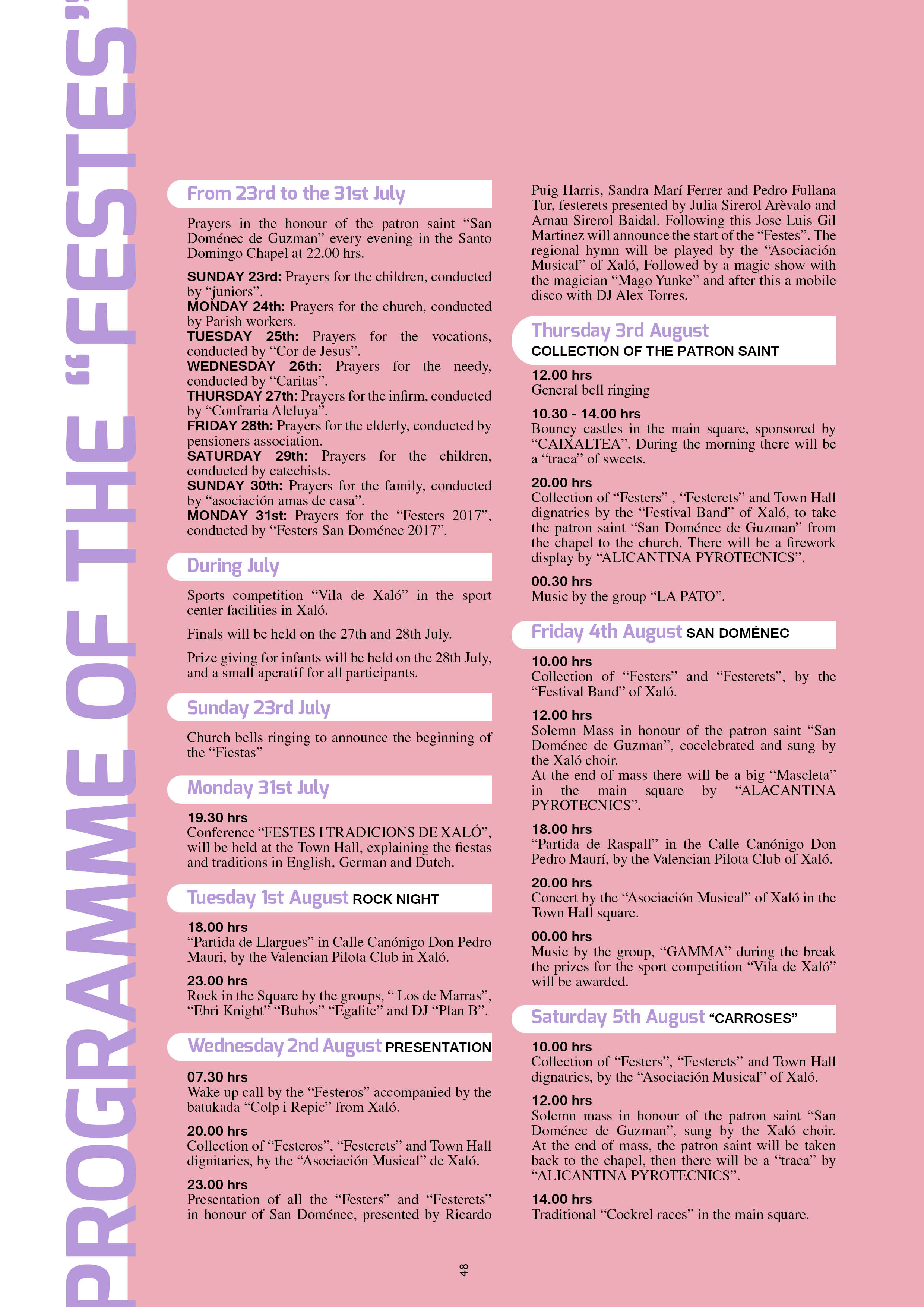 Program Festivities Santo Domingo Xaló 2017 Spread the love Download the program here. Or pick up your copy of the program in the Tourist Info (tuesday-friday 9.00 – 14.00 hrs.)