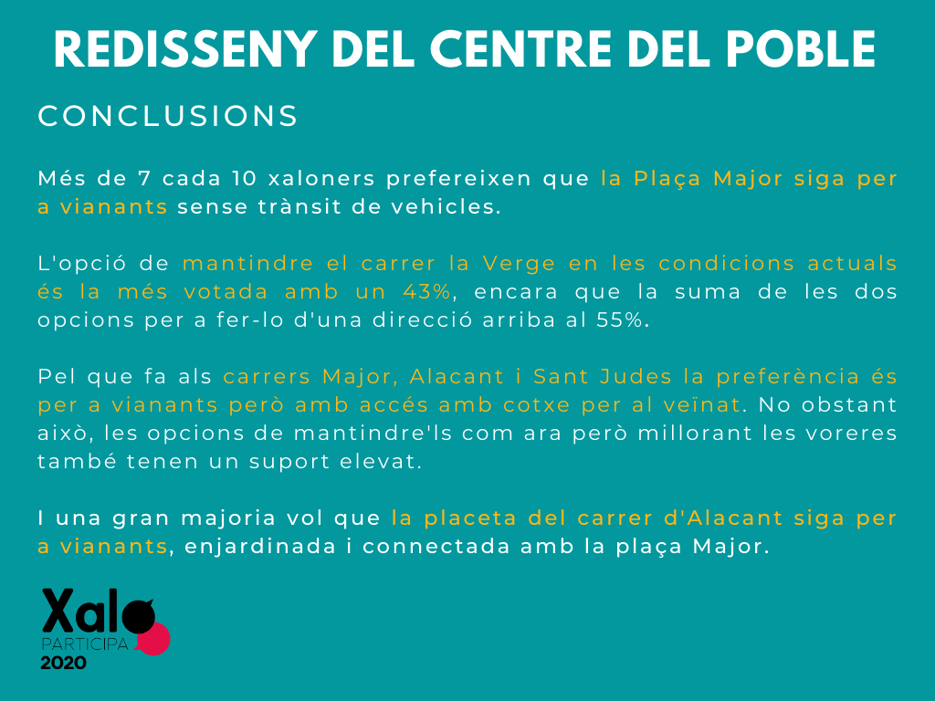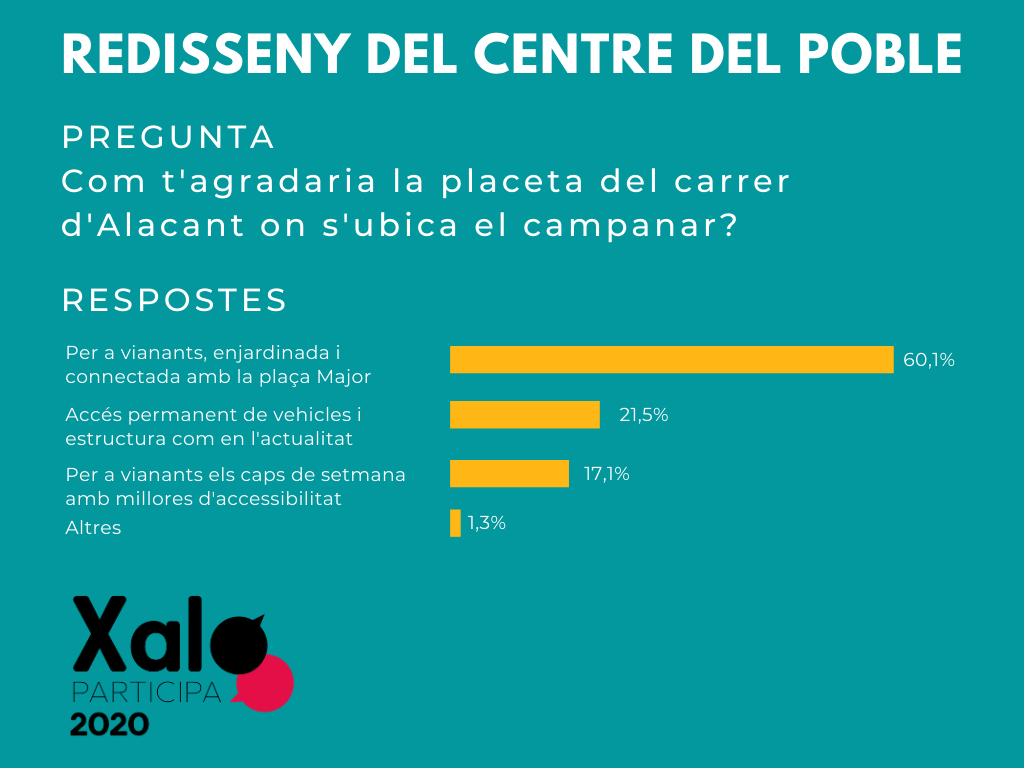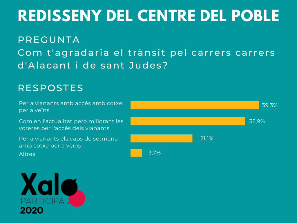 Vos presentem els resultats de les enquestes sobre la dependència i el redisseny del centre del poble del procés de participació ciutadana Xaló Participa 2020.